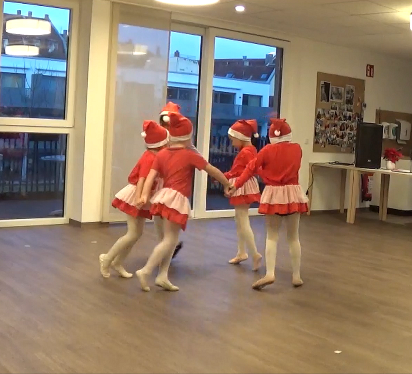 Am 3. Dezember waren wir mit vier Tanzgruppen zu Gast im Alten- und Pflegeheim Elisabeth von Offensandt-Berckholtz-Stiftung, wo diese ein paar Tänze vorführen konnten. Dabei gab es viele strahlende Augen – Heimbewohner und Pfleger haben sich gefreut, dass ihnen damit die Vorweihnachtszeit versüßt wurde, die auftretenden Tanzkinder freuten sich über die tolle Auftrittsmöglichkeit und anschließend über die vielen leckeren Plätzchen, die denen vom Heimleiter Herrn Krevet überreicht wurden.